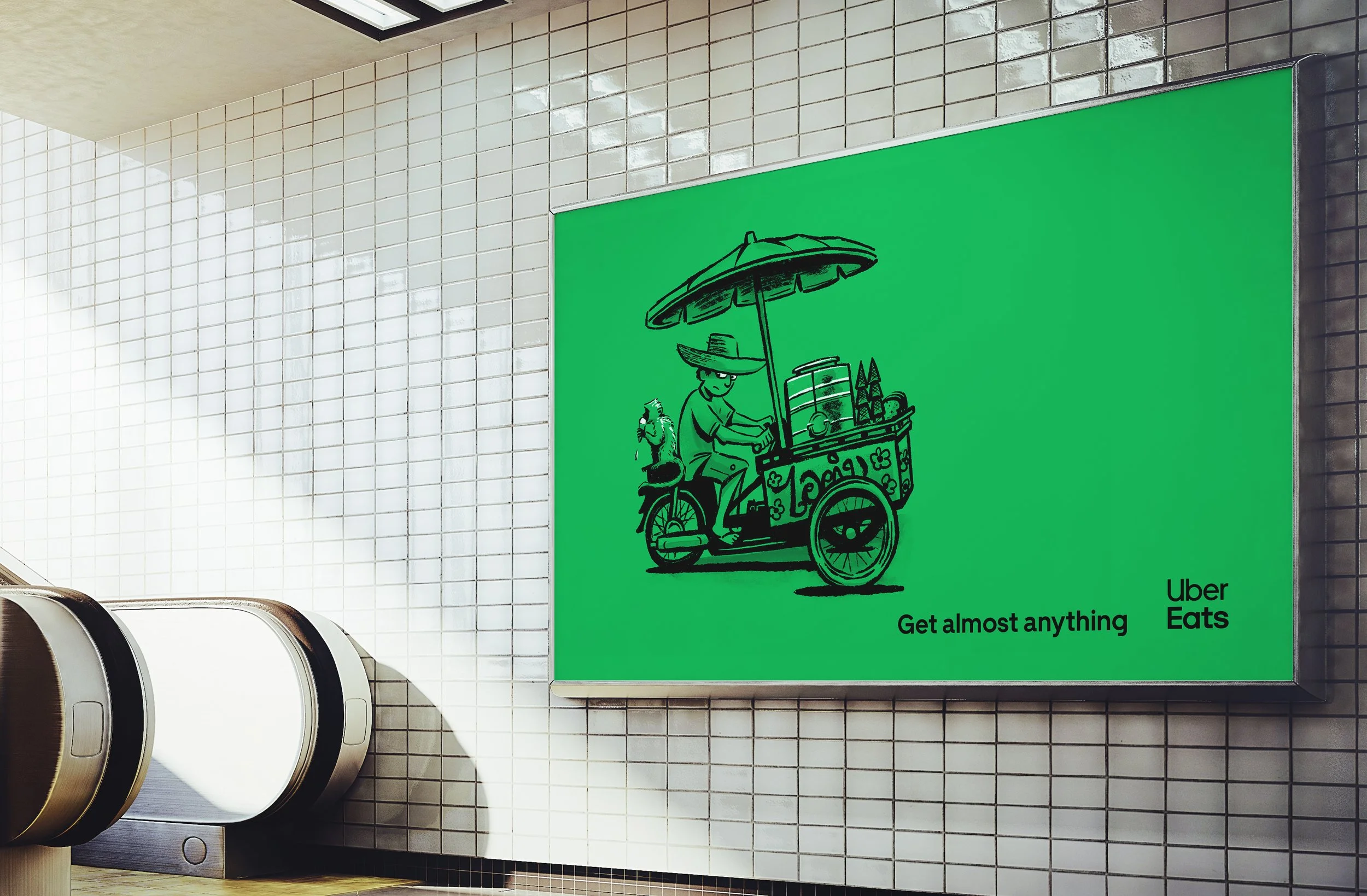 This Out-of-Home campaign brings a playful personality to the brand, showcasing all kinds of unexpected items delivered by Uber Eats. While the artwork stays rooted in the brand’s color palette, new executions were developed to highlight the platform’s range and unlock relevance across the Southeast Asian market.